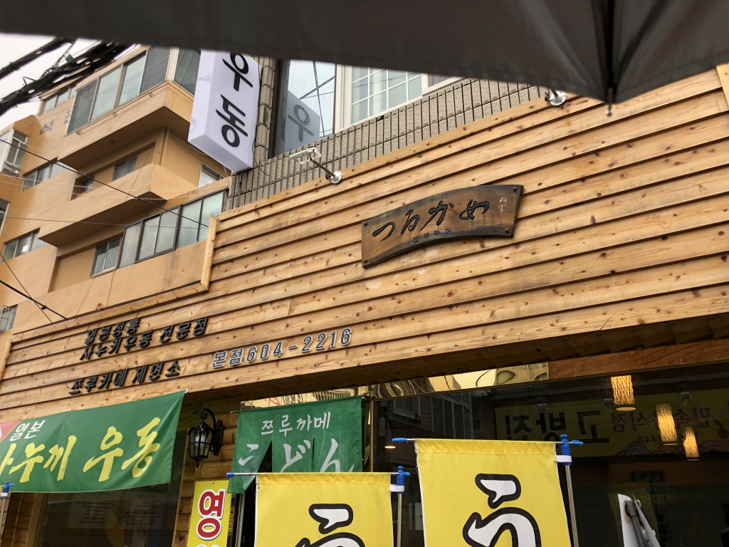 '우동' 이라고 적힌 흰 간판을 찾으시면 되요. 일본 정통 사누키 우동 전문점이라고 합니다.