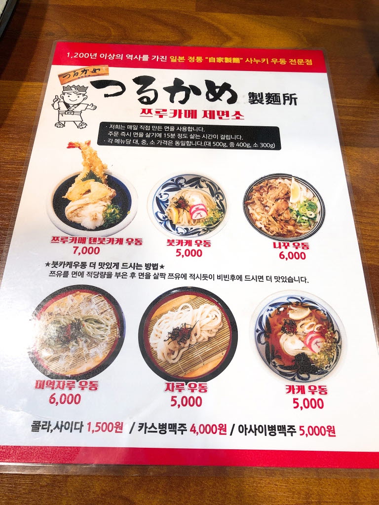 우동이 주력 메뉴라 역시 여러 우동이 많아요. 그 중 저희는 가장 기본인 카케우동과 붓카케 우동을 주문했어요.