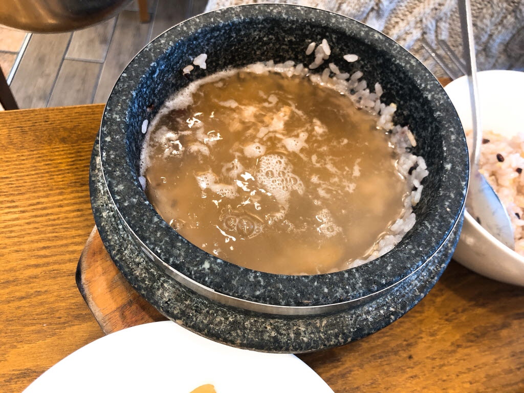돌솥밥은 뭐니 뭐니 해도 따뜻한 숭늉과 누룽지지요~ 밥먹을 동안 뜸 들여진 누룽지까지 다 먹고 나면 세상 배부르고 행복합니다~^^