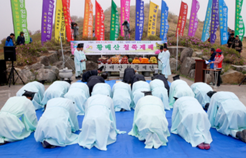 행사의 첫 시작은 철쭉제례부터 시작입니다. 산을 오를 때 술과 제물을 준비하던 산신제에서 유래되었다고 하네요^^;;