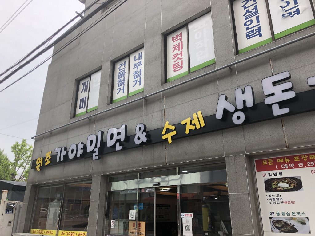 요즘 날씨가 갑자기 더워졌어요. 점점 봄이 짧아지나 봄ㅠㅠ 마트에 갔다가 날이 너무 더워서 동네 맛집을 찾아갔습니다. 우리 동네 최고 밀면집 '원조 가야밀면 & 수제 돈까스' 이름이 좀 길쥬~ㅋㅋ 제가 육아로 한 2년을 집에만 있었더니 동네 맛있는 집이 많이 생겨 요즘 외출이 너무 행복해요^^