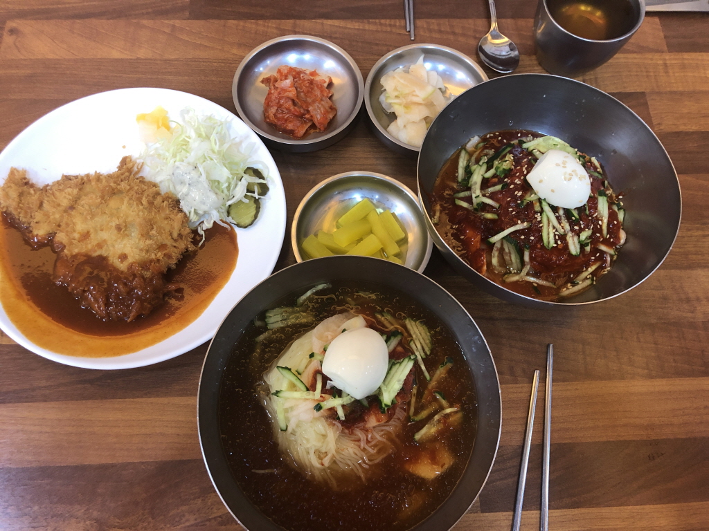 제 개인적인 입맛으로는 밀면, 돈까스 다 맛있어요! 그중 밀면은 제가 먹어 본 곳 중에 쵝오!!ㅋㅋㅋ 올여름은 이 곳에서 해결하려고요..ㅋㅋ 돈까스는 보통, 평범해서 밀면과 함께 먹기 딱 좋았어요. 특히나 여긴 함께 먹을 수 있도록 세트메뉴가 있으니 더 좋고요.^^